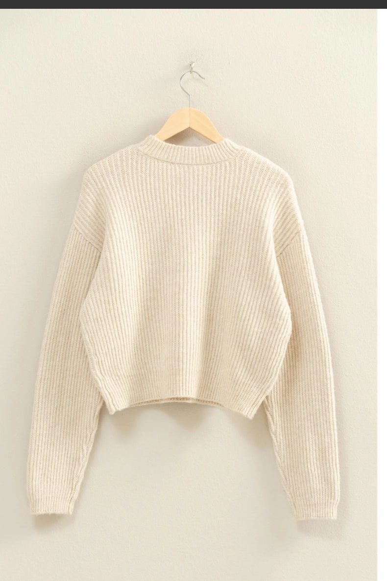 Oatmeal / beige sweater features ribbed texture, relaxed fit, and crewneck style. 100% polyester